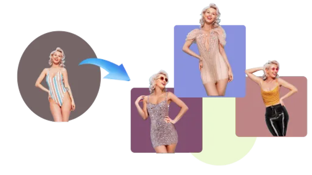 ポートレート写真と服の画像をアップロードするだけで、AIが自動的に着せ替えた姿を数秒で生成し、リアルなフィッティング結果を確認できます