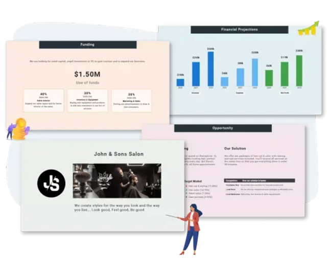 既存のビジネスプランからデータを自動的に取り込み、一貫性のあるストーリーを持つピッチデックを素早く作成できます